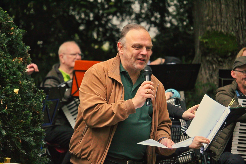 Mit einem famosen Auftritt startete am 26. Mai 2024 der Kulturring die Sonntagsmatineen im Läublinpark in die vierte Saison. Sonntag –Mittagszeit – bestes Wetter – ein schöner Park mit hohen Bäumen: das war die Grundvoraussetzung für eine gelungene Matinee. Die weiteren Akzente setzte der Seniorenspielring des Harmonika-Clubs Haltingen. Bezeichnenderweise mit dem Marsch „Frohes Wiedersehen“ begannen die Musikerinnen und Musiker unter ihrem Dirigenten Hans Zimmermann vor rund 100 Zuhörern ihr Programm. Ein wahres Kaleidoskop an Gute-Laune-Musik wurde geboten. Marsch, Tango, Cha-Cha-Cha, Polka oder Walzerklänge erfreuten das Publikum. Gekonnt humorvoll führte René Winzer durchs Programm. Nicht nur für Speis und Trank war gesorgt, ebenso sorgten etwa 70 Klappstühle dafür, dass sich die Gäste wohlfühlten. Da der Umstand, dass die Bühne in diesem Jahr ihr 100. Jubiläum begeht gewürdigt werden soll, wird es an jeder Matinee eine Fortsetzungsgeschichte über die Historie des Läublinhofs geben. (Monika Merstetter)